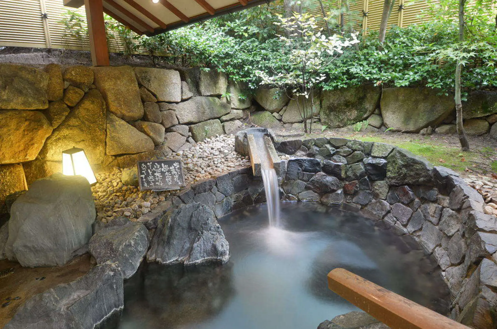 栄楽館の温泉は、敷地庭園地下400mから毎分250リットルの湯量で湧出している